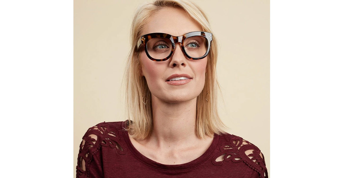 Go bold for the holidays in Oprah's new favorite frame for 2019 Bravado. Bravado's oversized yet flattering shape with luxe gold detailing is the perfect finishing touch to any look. Bravado features our Focus Blue Light Lenses, which filter 40% or more of the harmful High-Energy Visible (HEV) blue light to minimize digital eye strain, headaches, and make screen time a lot easier on the eyes.