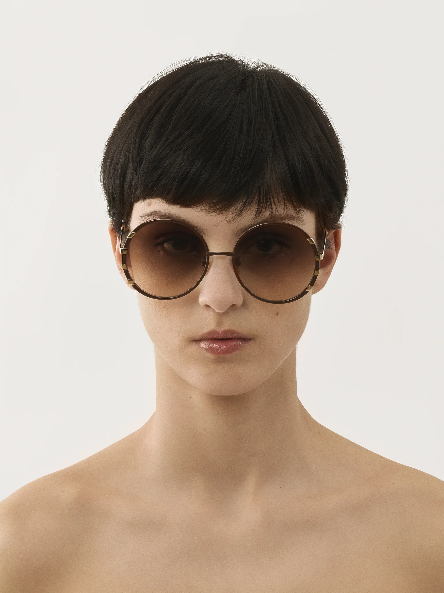 Timeless and elegant, the Celeste round sunglasses feature a brown metal frame accentuated with gold metal stripes. Soft gradient brown lenses enhance the classic appeal of these easy-to-wear ladies' sunglasses.