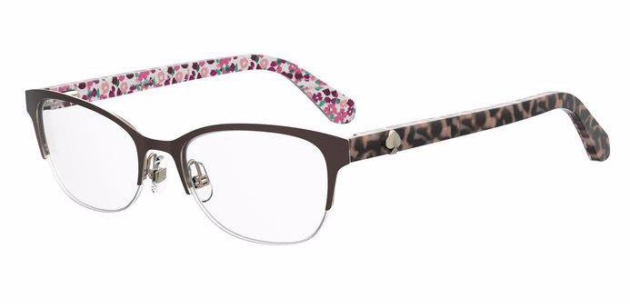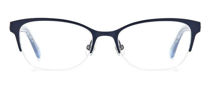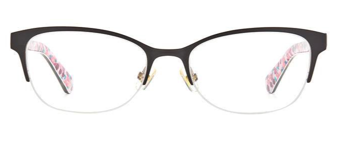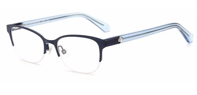 These Ferrara eyeglasses from Kate Spade are an squared frame. The temples are comfortable and offer stability. These frames retain their balance and adjustments. The Kate Spade logo is near the temple end.