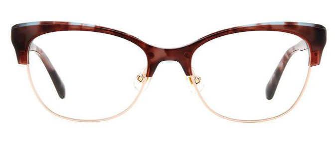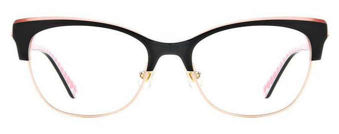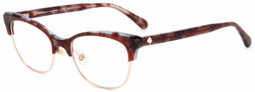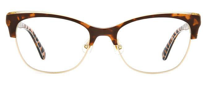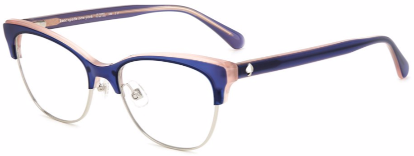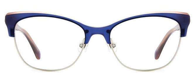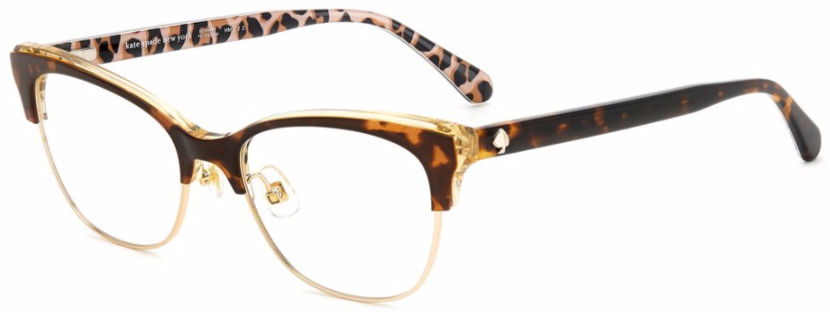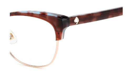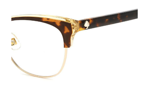 The bold acetate structure and the ample frames with adjustable nose pads convey the personality of these eyeglasses, highlighted by rich colors and special new prints to create the perfect mix of originality and elegance. This uniquely stylish accessory is trimmed on the temples by a metal Kate Spade logo and the must-have SO HAPPY TO SEE YOU inscription.