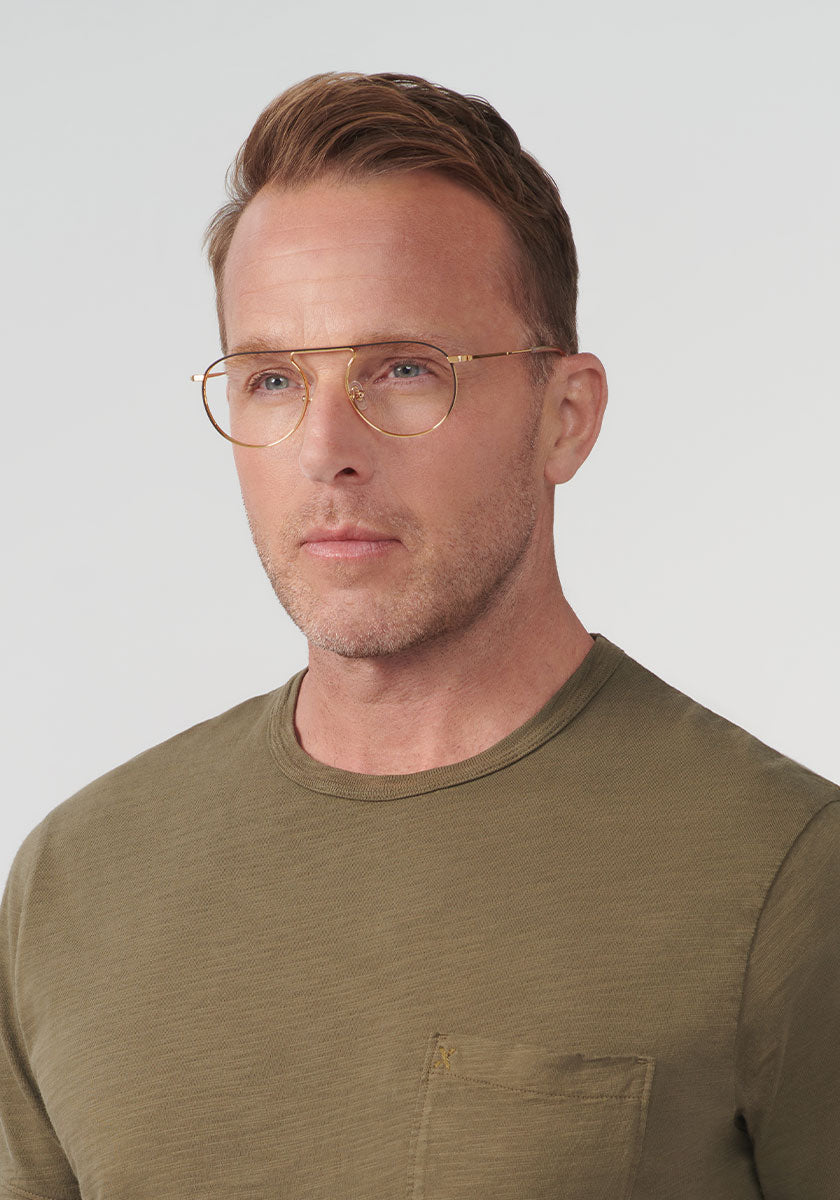 The OG optical. A round shape framed by a signature brow bar, RAMPART OPTICAL is a comfortable fit for most face shapes and is just downright sophisticated. Constructed with stainless steel with a sturdy feel, do it big in this frame.