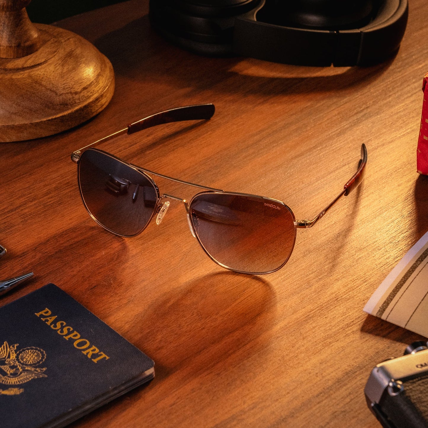 The Aviator in 22k Chocolate Gold from the Randolph Holiday Collection is a bold expression of timeless luxury and aviation heritage. Featuring a polished 22k Chocolate Gold frame with matching screws, Cape Sand lenses, and Jetway Bayonet Temple Tips, this frame exudes meticulous craftsmanship. Whether you're jetting off to a holiday destination or gifting them to that special someone you're traveling miles to see, these Aviator's are the ultimate sunglasses. Complete with embossed Randolph case and a custom cleaning cloth, this aviator represents elevated design, making it a thoughtful gift or an essential travel accessory.