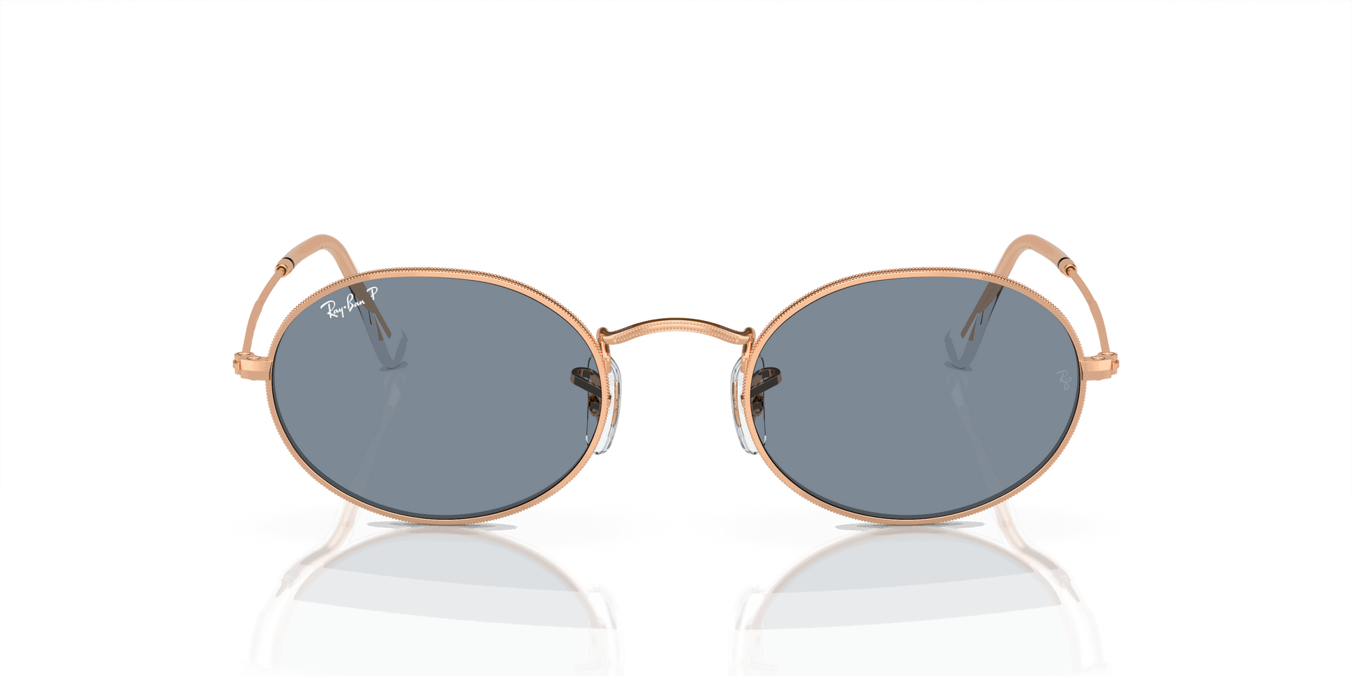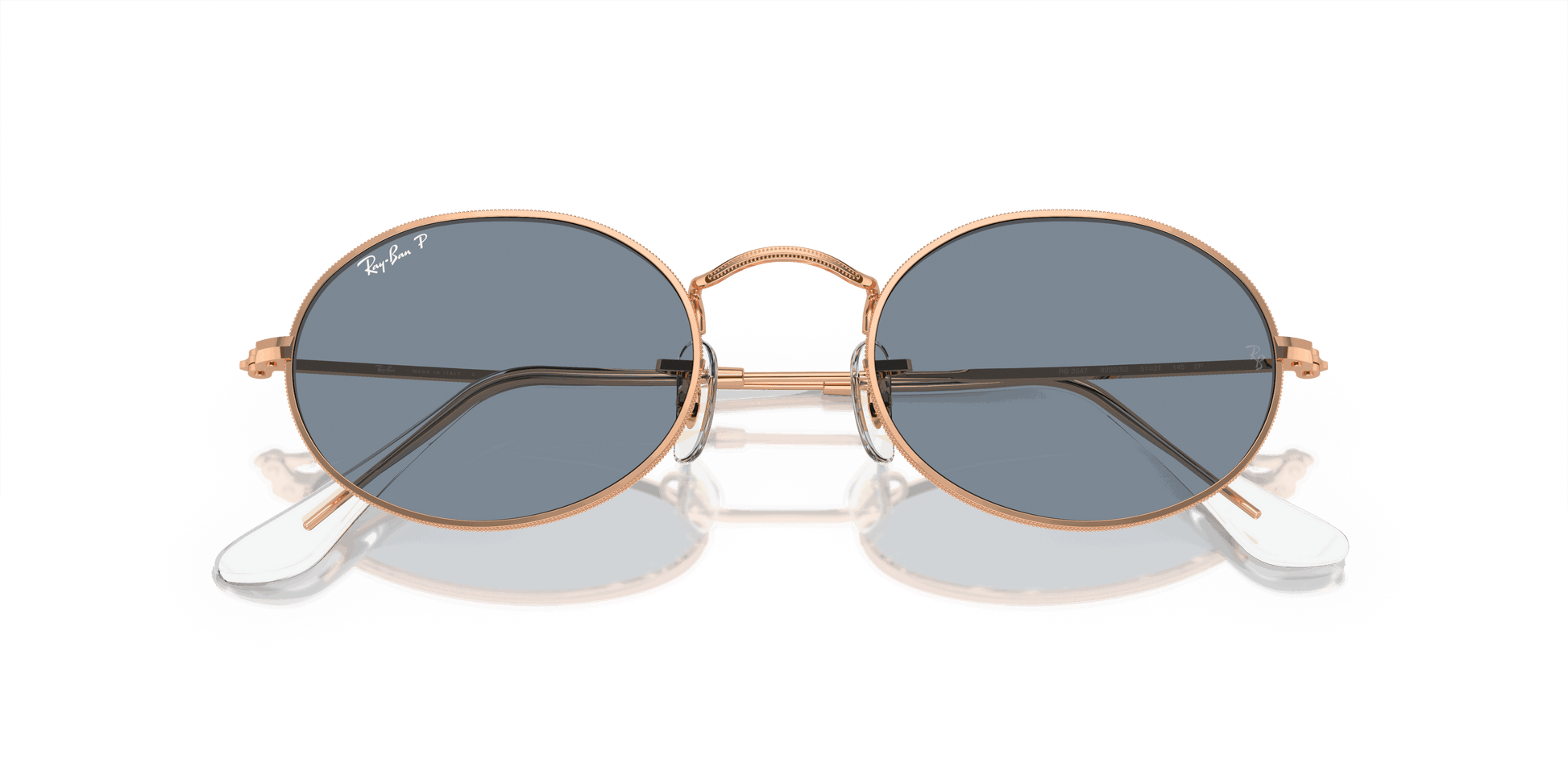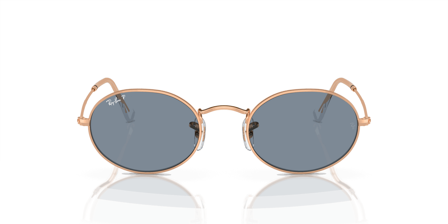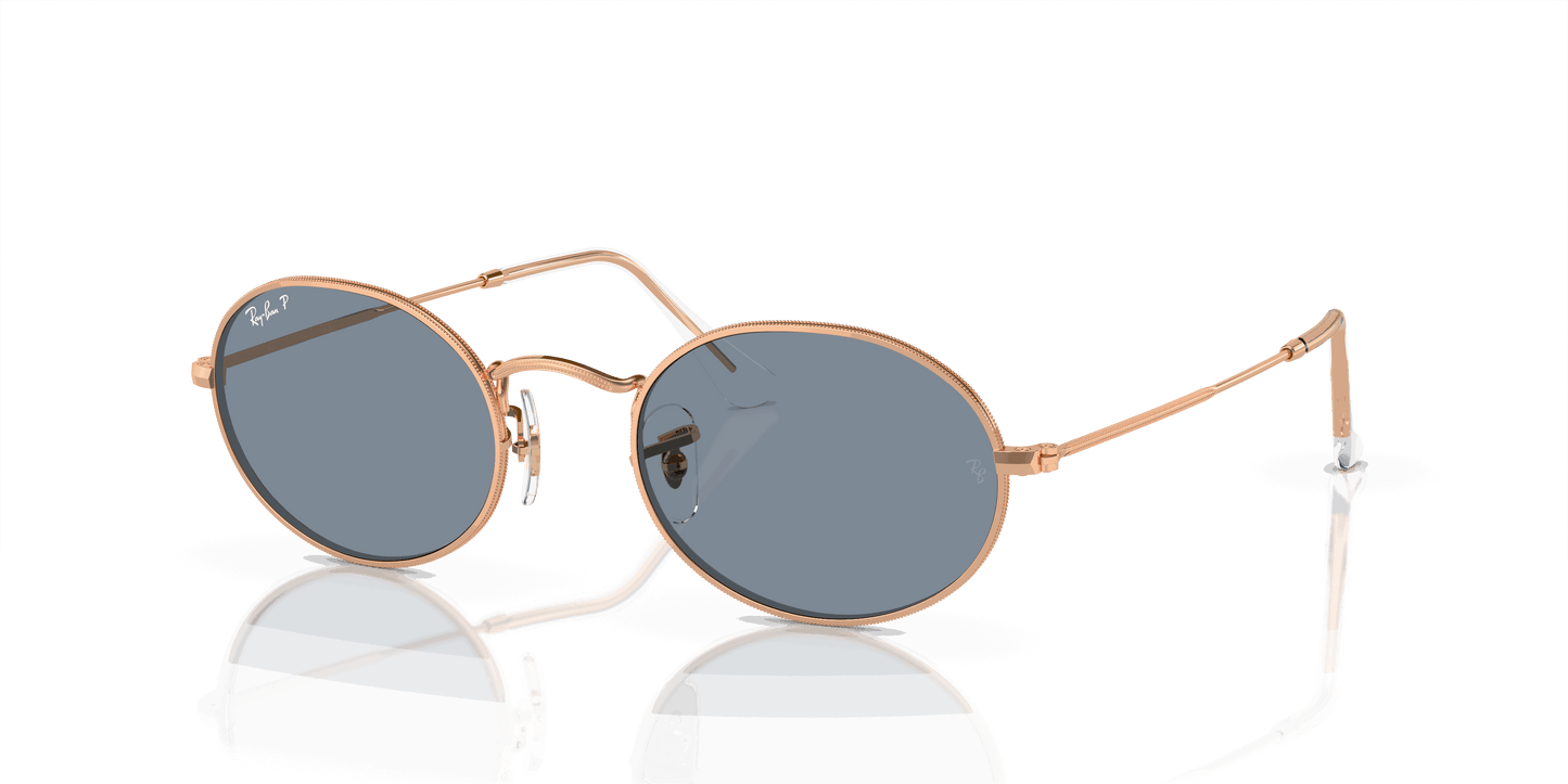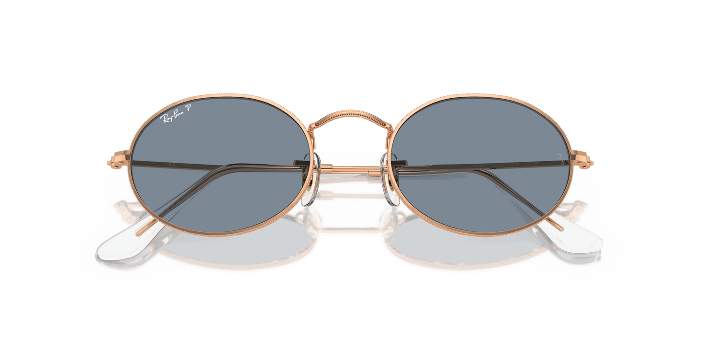 Shop Ray-Ban Sunglasses Unisex OVAL METAL - Rose Gold frame Blue lenses 51-21 polarized. Free shipping and free returns on all orders