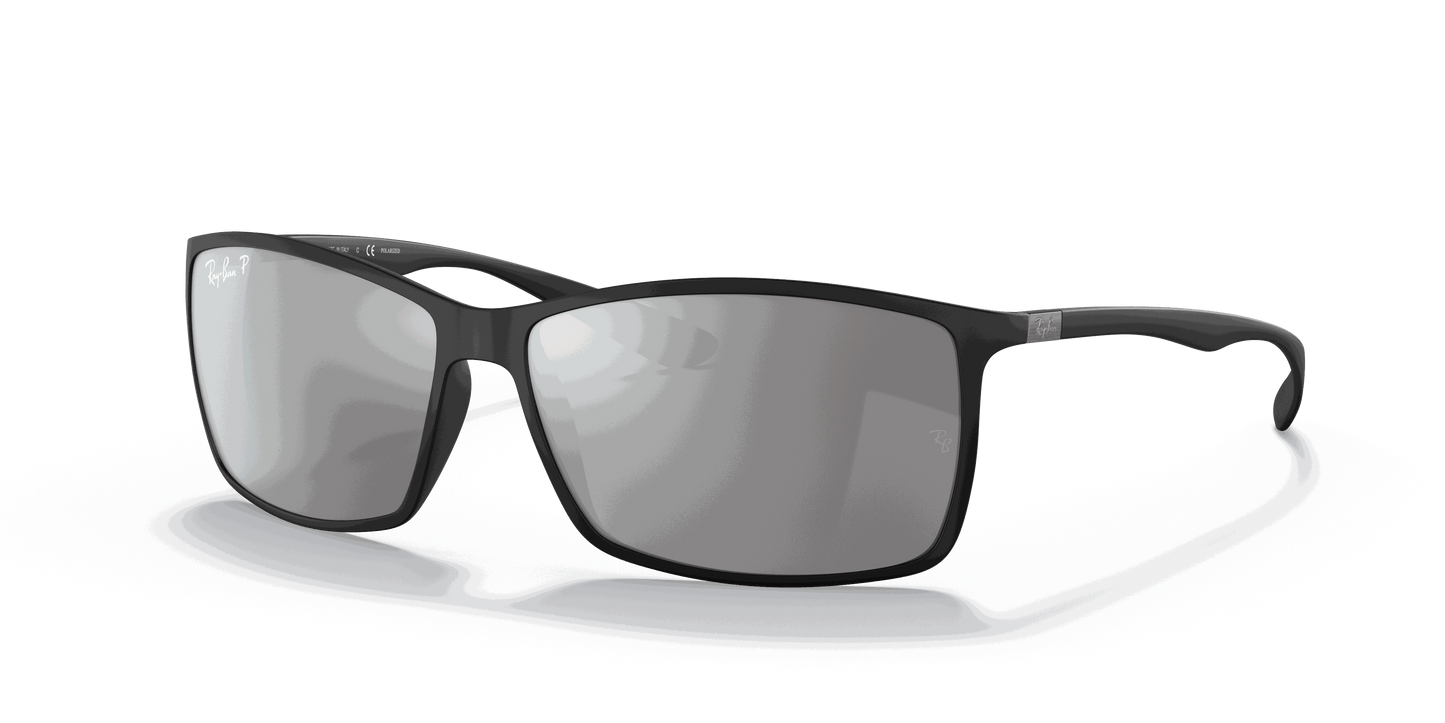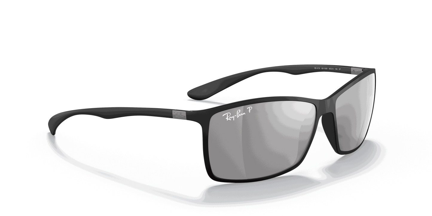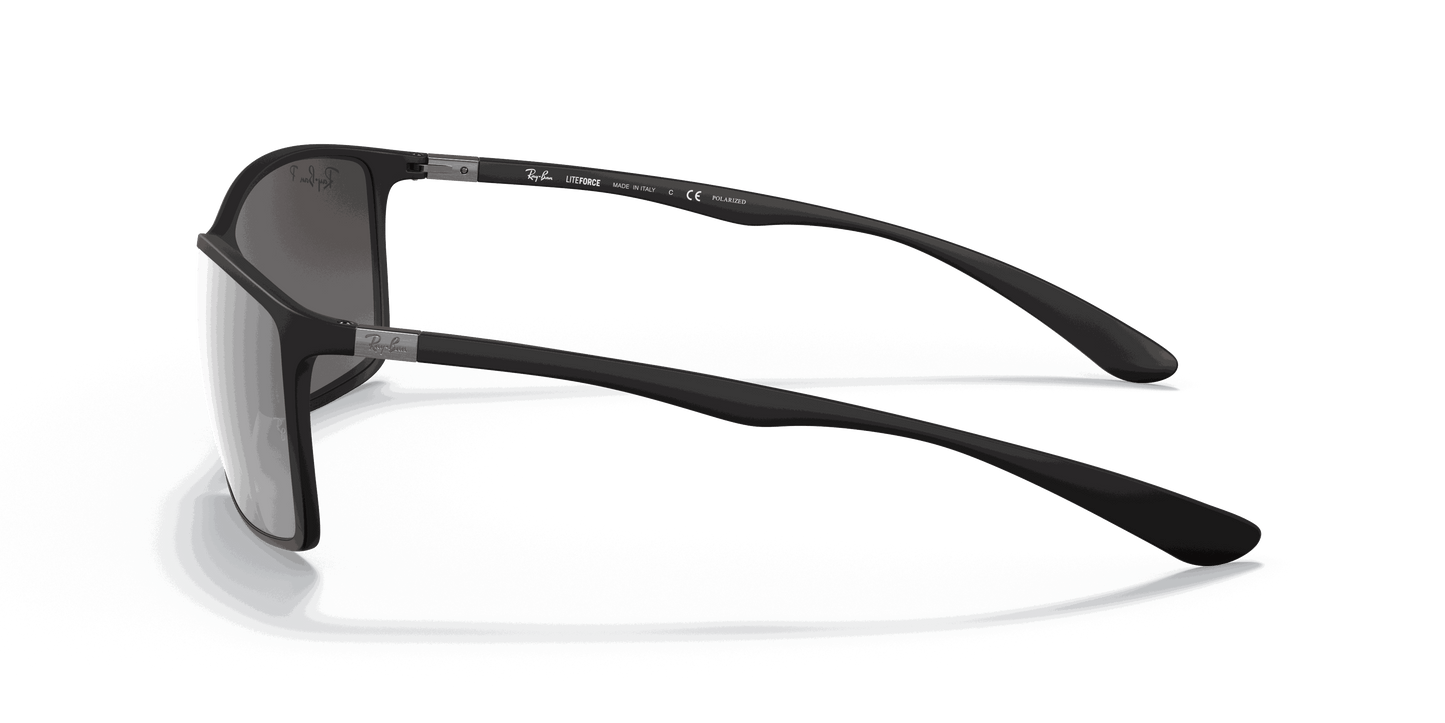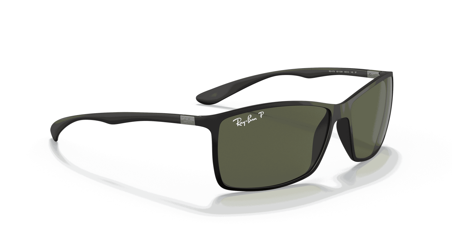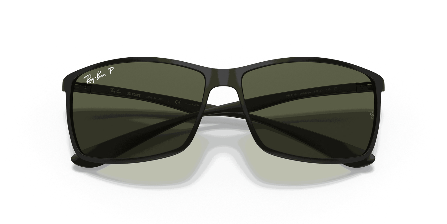 Ray-Ban ® Liteforce Tech RB4179 sunglasses are a perfect combination of iconic design and innovation. A new bio-material made of a semi-crystalline thermoplastic used in aerospace, automotive, and for medical implant technology gives you superior lightness, durability, and comfort in a plastic frame. These rectangular Sunglasses for men feature a curvacious top bar in a super light injected construction, allowing the same thickness of a metal frame. The polycarbonate lenses are available in P3 polarized with a hydro-oleophobic coating which resists liquids on the lens.